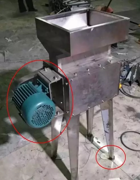 对辊粉碎机均为皮带传动,使用一段时间之后,皮带可能会松动,此时需要对皮带进行张紧,因此,电机罩必须能够非常方便的拆卸。