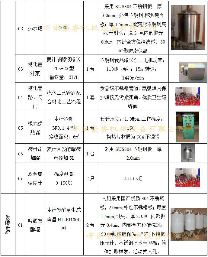 - HLS系列学校啤酒实验设备,主要包括糖化部分和发酵部分,二者通过综合管道接通,其系统配置全面,设备技能先进,操作灵活,安全稳定,满足大专院校啤酒生产、教学要求,也可以根据用户需要进行设计。 糖化部分由糊化锅、糖化锅、过滤槽、煮沸锅、漩沉槽和换热器构成,并且各部件之间通过管道接通,糊化锅和糖化锅连接有原料输入管道;发酵部分由6-8个发酵罐构成,发酵罐之间连接有洗涤杀菌管道、物料管道、冷媒回流管道和CO2管道。