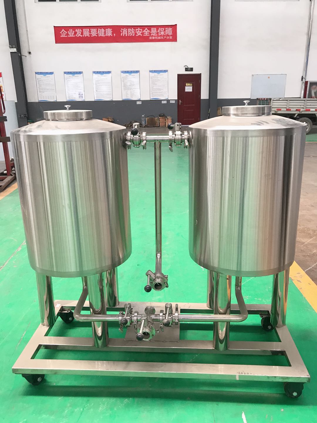 4. 消毒液冲洗,为了保证在冷洗和酸洗情况下进一步满足设备、管道的无菌条件、往往在后洗结束后再用合适浓度的消毒剂水溶液再冲洗一次。这种消毒剂最好在冲洗后,其残留液不会对产品产生任何影响,对设备也没有强烈的腐蚀作用,如过氧乙酸、二氧化氯、过氧化氢等,这样就不必再用无菌水进行重复冲洗了。近代啤酒酿造为了保证产品质量和食品的安全性,强烈反对使用甲醛之类的杀菌剂对大罐、清酒罐和华体(中国)管道进行杀菌处理,因为甲醛残留会造成啤酒的口感和饮用安全性出现问题。